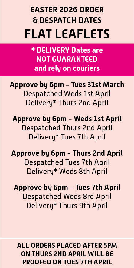 Please find amended order and despatch times below for the Easter Holiday 2026.